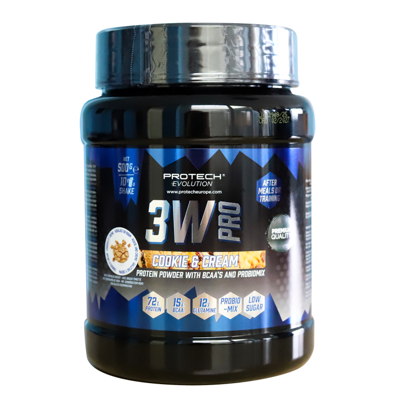 Alliez performance et digestion avec 3WPro Cookie & Cream, une protéine premium enrichie en BCAA et probiotiques.